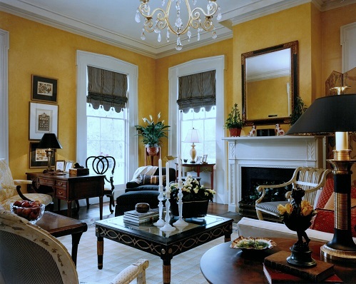 The interior of this Charleston parlor (featured in Fall/Winter 2012 Elegant Homes), with it’s beautifully restored moldings, paneling, and antique glass windows, needed furnishings that would complement, not compete, for attention. A lengthy renovation afforded me the time to have a custom rug made for the room. I wanted it to appear as if it could have always been with the house and a simple faded Oushak design achieved that goal.