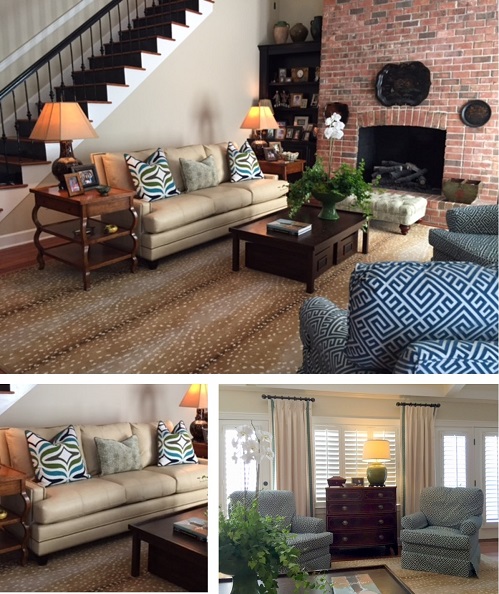 Recently a client told me, “I have some ideas for our family room. Could you help me make it happen?” We started selecting new upholstered furniture and a new area rug. We also added draperies, and repainted the walls in a soft tan color.