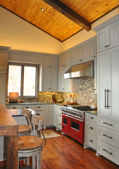 At our first kitchen meeting for this mountain home renovation, knee deep in appliance brochures and photos, my conservative client surprised me by suggesting, “Do I really have the nerve to do a red stove?!”