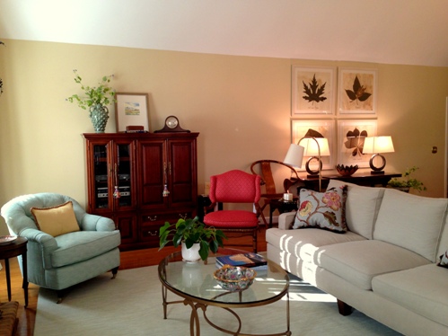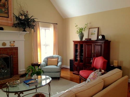 Our client was unhappy with the overall, unfinished and cold feeling of her patio home, but didn’t know what to add to make it warm and pretty.